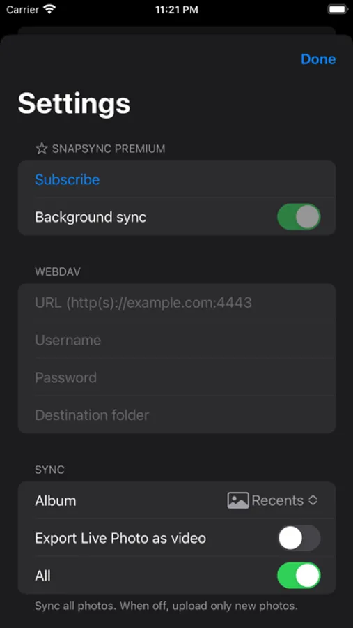 - Works with Synology, Nextcloud, Owncloud and other NAS (you can sync photos via WebDAV)