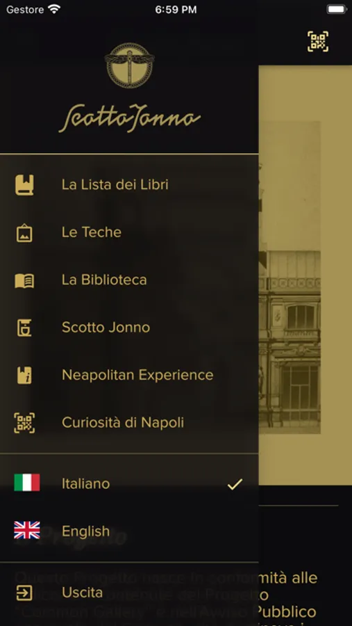 L'app ScottoJonno ti permette di fruire di contenuti aggiuntivi all'interno del locale ScottoJonno situato nella tesoreria di Napoli. Inquadra i QRCode che sono nascosti nelle sale del locale e troverai i misteri di Napoli, prenota una visita enogastronomica tramite l'app, cerca un libro storico di Napoli per conoscere i dettagli e la posizione nella biblioteca, leggi i dettagli delle teche