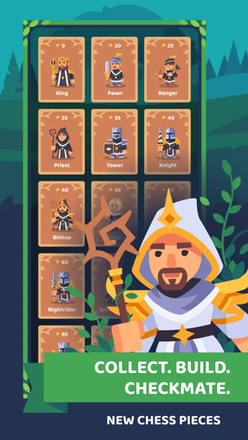 DECK-BUILDING Between games, build up your deck. Your deck has four card slots for Chess Crusade pieces—upgrade pawns to Rangers, sanctify your Archbishop, or run the brutal Rook Rush play.