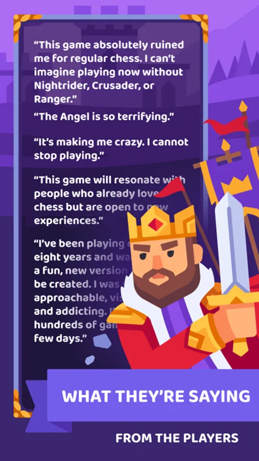 “I’ve been playing chess for eight years and was skeptical a fun, new version could ever be created. I was wrong. It’s approachable, visually great, and addicting. I’ve played hundreds of games in just a few days.” - 04tuna