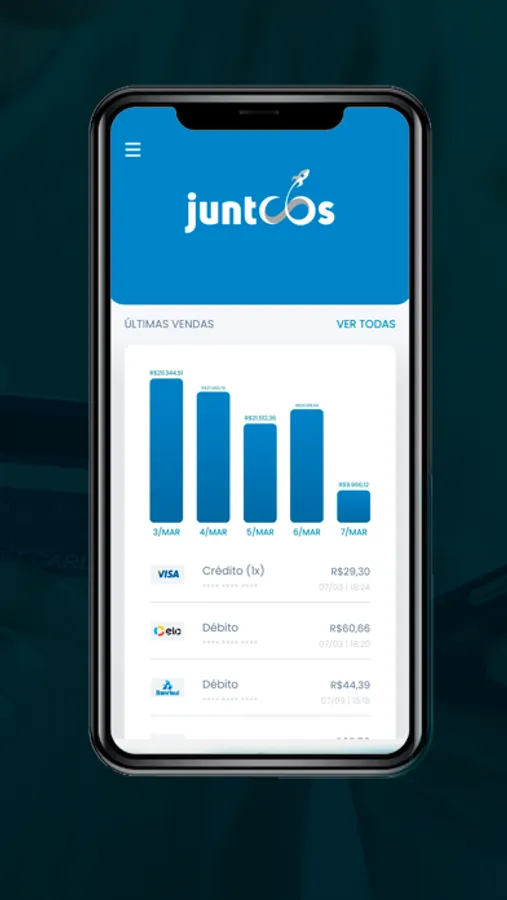 A Juntoos é uma plataforma completa de gestão de pagamentos eletrônicos. Com nosso aplicativo, você consulta suas vendas e os detalhes das transações, acessa o extrato financeiro, tem acesso a sua agenda de recebíveis, ao nosso atendimento e muito mais!