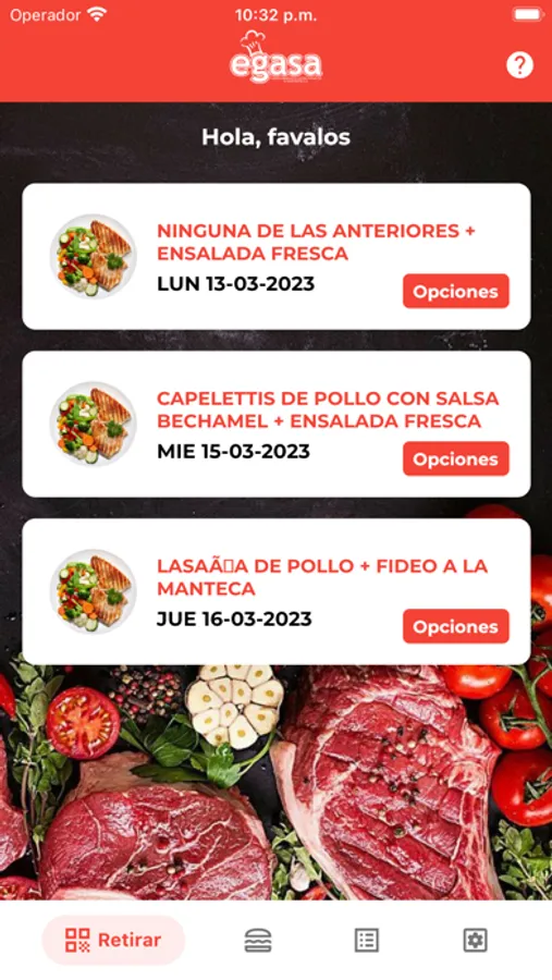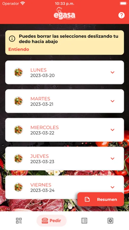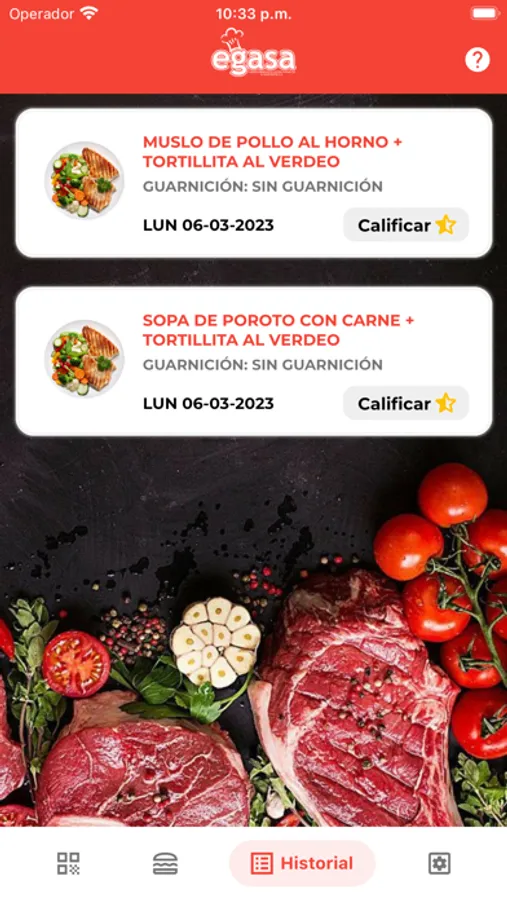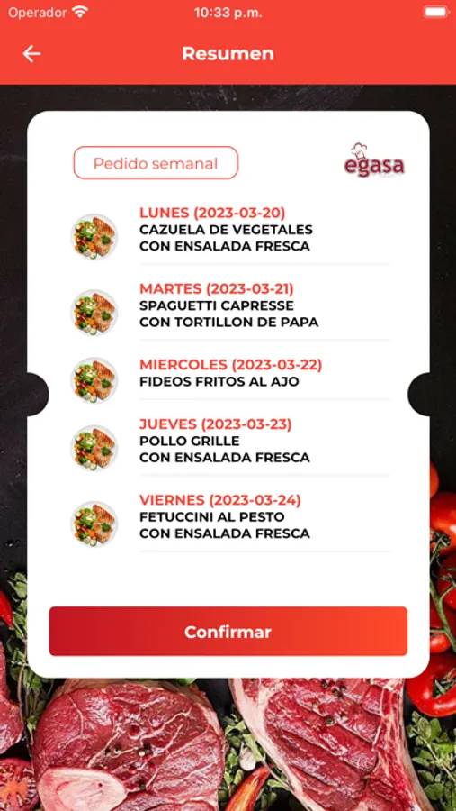 Aplicación para gestión de almuerzos personalizados EGASA