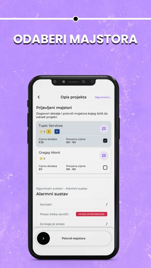 Kada se prijave majstori, vi kao klijent možete vidjeti njihove profile, ocjene, kontakt informacije, i recenzije od drugih korisnika. Nakon što ste pregledali sve prijave, možete odabrati majstora kojeg želite da vam odradi posao.