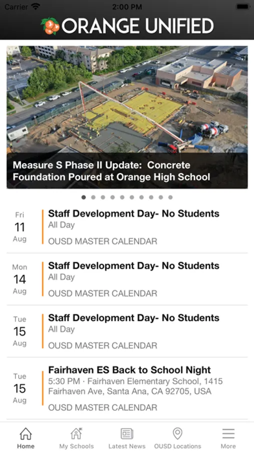 The Orange Unified School District app provides parents, students, and faculty members with all the information they need in one place, conveniently accessed and formatted specifically for consumption on their mobile devices.