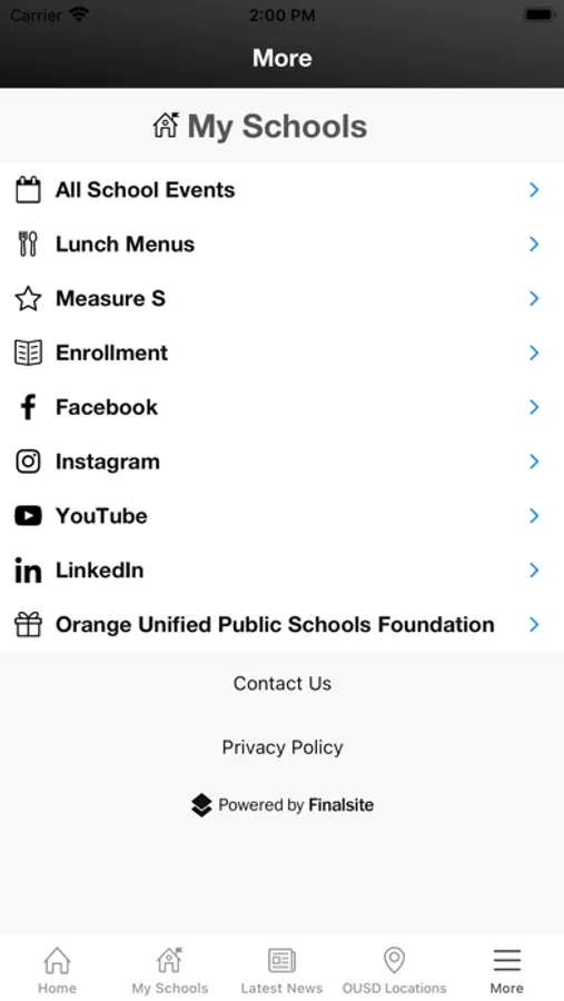 The information presented in the Orange Unified School District app is drawn from the same source as the Orange Unified School District website. Privacy controls restrict sensitive information only to authorized users.
