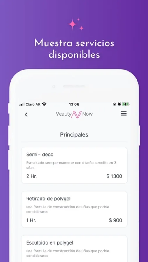 Veauty Now es la aplicación móvil diseñada para ayudarte a gestionar tu negocio. Es perfecta para manicuristas independientes que quieren ahorrar tiempo, llevando una rutina organizada y productiva.