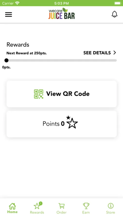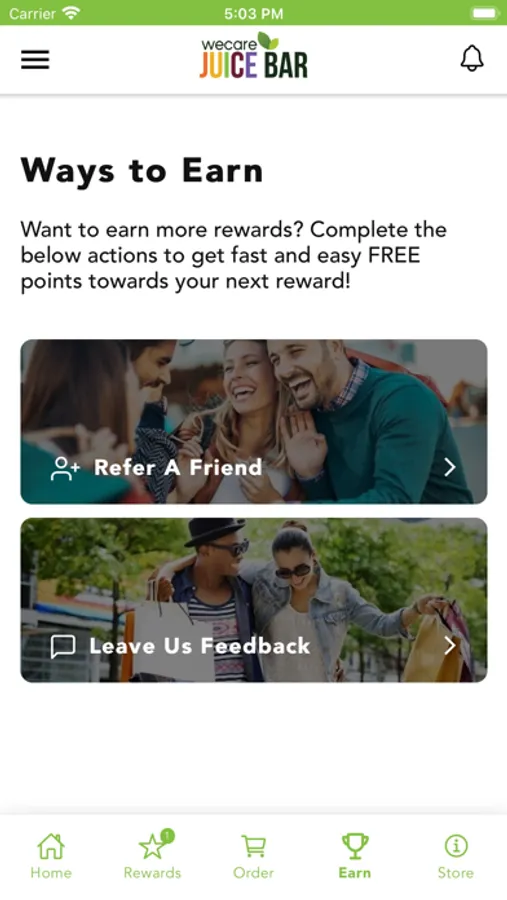 WeCare Juice Bar App - Earn and track your rewards at participating stores