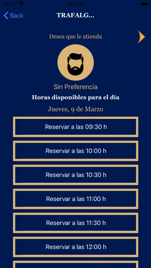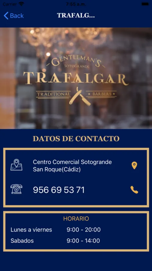 App de la Barberia Trafalgar Barber Sotogrande, donde los clientes pueden reservar sus citas fácilmente.
