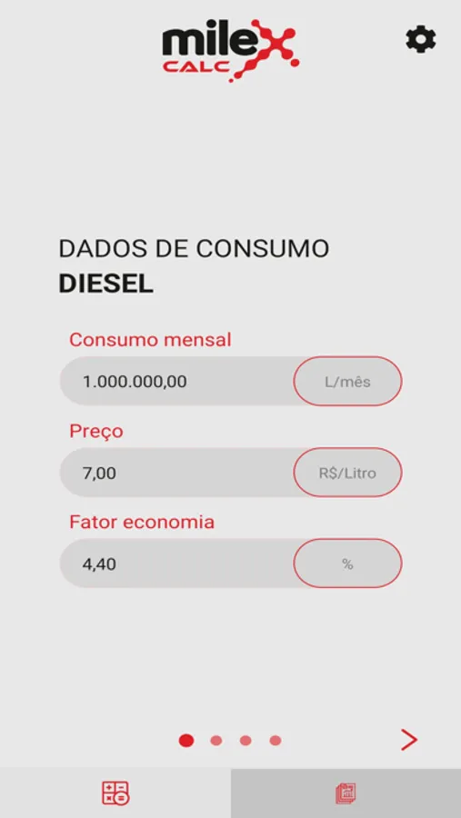 A Calculadora milex™ é uma ferramenta de ajuda ao cliente a simular os ganhos econômicos aproximados com a redução do consumo de diesel e ARLA 32. Calcula ainda a redução das emissões fornecendo ao cliente indicadores da sua atuação responsável em relação ao meio ambiente. Os dados fornecidos pela Calculadora milex™ fazem referência ao uso do aditivo milex em dosagem contínua ao diesel consumido numa base mensal.