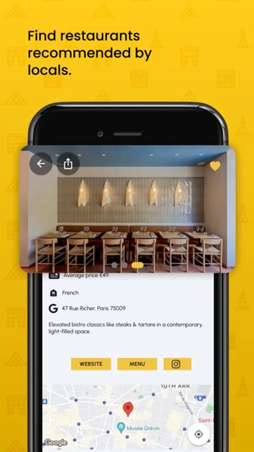 Indulge your taste buds with over 200 meticulously curated food recommendations. Journey through the culinary landscape of Paris, spanning quaint bistros, trendy rooftop bars, vibrant street food markets, and world-renowned Michelin-starred establishments. As you savor the flavors of Paris, you also delve into its gastronomic history and the masterful chefs who've elevated French cuisine to a revered art form.