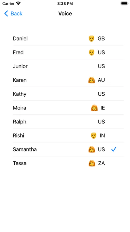 - You can also download additional voices from Apple for each language in the device Settings/Accessibility/Spoken Content/Voices menu.