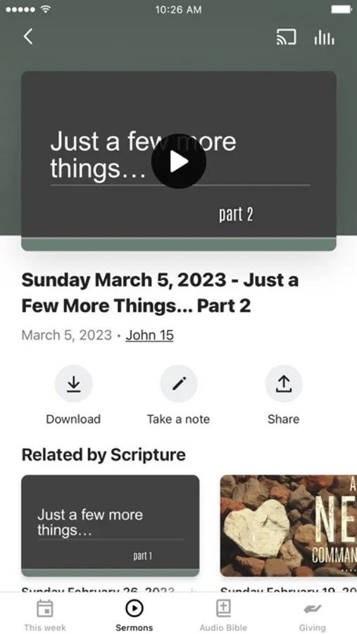 This app will help you stay connected with the day-to-day life of our church. With this app you can: watch or listen to past messages; stay up to date with push notifications; share your favorite messages via Facebook or email; and download messages for offline listening.