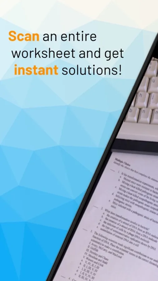 Introducing Question Master, your ultimate homework companion. Snap a photo of any worksheet, and we'll convert it into an easy-to-read list of questions, answers, and explanations. Submit a photo of your notes and you'll get a nice list of questions and answers for you to study from. Forget about expensive tutors, embrace the convenience and affordability of on-demand homework assistance. With support for multiple-choice, short answer, and extended response questions, mastering your homework has never been this simple. Scan entire worksheets at once with no cropping needed! Download Question Master now and revolutionize the way you study!