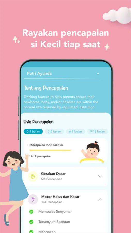 • Daftar pencapaian diolah dari berbagai sumber terpercaya seperti CDC, USA dan Denver Developmental Screening.