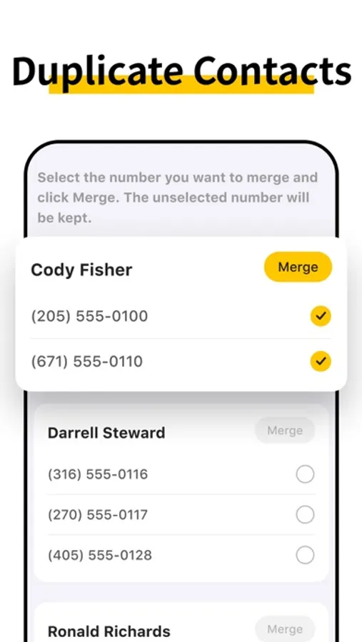 - Duplicate contact cleaning function to easily clean up your contacts and keep your phone organized and tidy.