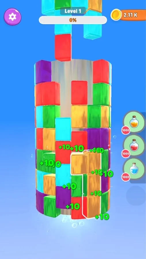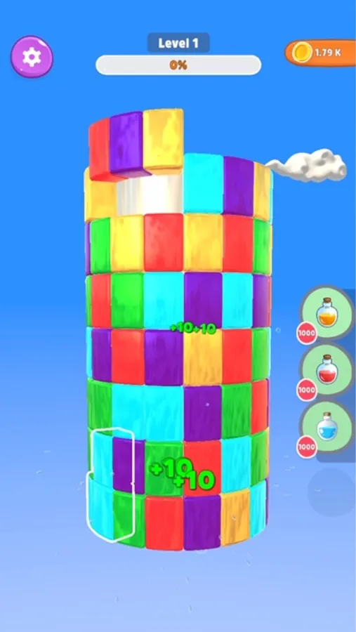 Try & match the three cubes on a rotating cylinder by moving around it. Watch out for the dropping cubes and try to eliminate as many cubes within the limited amount of moves as possible.