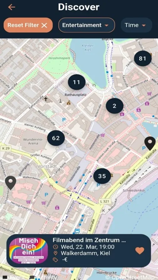 Find all events and leisure activities near you and don't miss anything! With Othia you can find any kind of event, whether concert, culture, party, or sport. We are the largest event calendar in the Kiel area and cooperate with the university departments, so you can find all events in one place.Explore leisure activities near you with our search function or intuitively on the map. Try Othia now and collect new experiences.