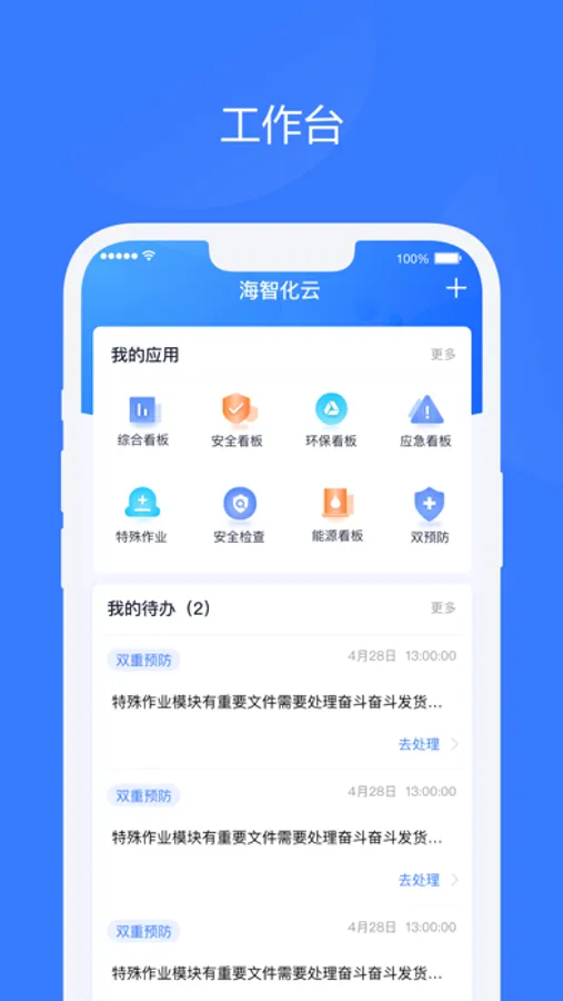“海智化云”是卡奥斯化工行业向政府、园区、企业推出的高效协同监管软件,为其打造安全、环保、应急、能源、封闭化、运营、服务、产业发展分析、管廊等一体化监管和服务应用。使用者可以移动式使用所需应用和处理待办事项,及时查收消息,提供通讯录并支持协同会商能力,管理、维护和查看个人相关信息等,移动端和PC端一体化协同。