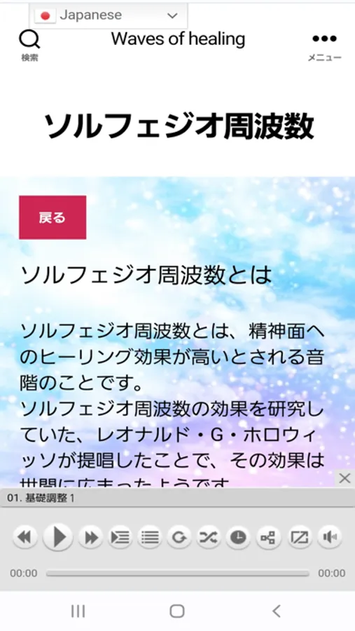 特定の周波数を目的に合わせて繰り返し視聴できるアプリである「癒しの空間Waves of healing」 は、日々受ける多くの電磁場や周波数によって歪んでしまった心身の周波数を調整し、よりよい毎日を送るために開発された現代人に欠かせない必須アイテムです。