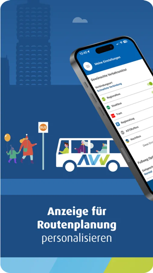 Egal ob unterwegs in Bus und Bahn, im Café oder zuhause auf der Couch: Die neue AVV-App „meinAVV“ informiert nicht nur über aktuelle Fahrpläne, sondern auch über Abfahrts- und Ankunftszeiten in Echtzeit, Haltepunkte und vieles mehr rund um den ÖPNV in deiner Region.
