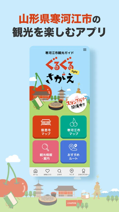 山形県寒河江市が提供する市内さまざまな観光スポットや見どころを紹介するアプリ。待望のLightバージョンです。寒河江観光をより楽しむためのコンテンツが盛りだくさんな部分はそのままに、ARに対応していない機種の方もご利用可能になりました。