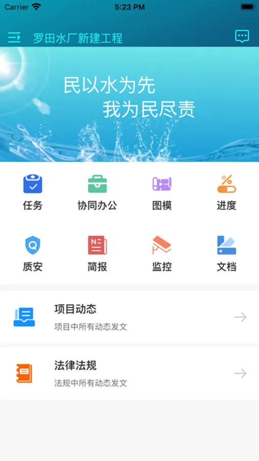 罗田水厂新建工程APP是在工程项目建设过程为参建各方提供的协同管理APP,提升参建各方的沟通效率及协同管理能力,保证项目进度、提高项目质量安全,降低项目成本。