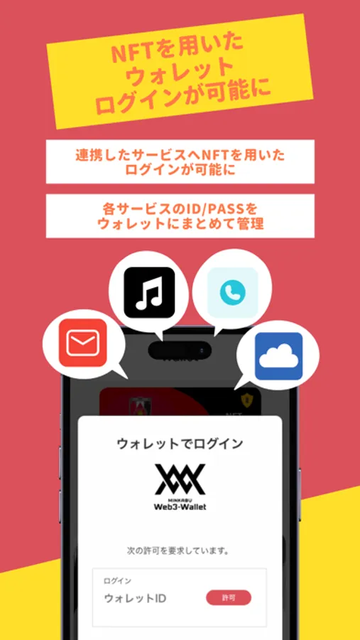・複数サービスと連携することで、ウォレット1つで様々なサービスにログインが可能になります。