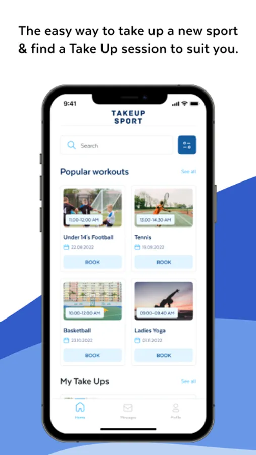 Take Up Sport is an app for coaches, facilities or sports clubs to add Take Ups to a single app based platform so that users can access sessions with ease & simplicity all from their mobile device. Fees are set by the coach & collected in app.