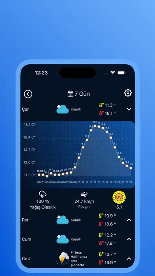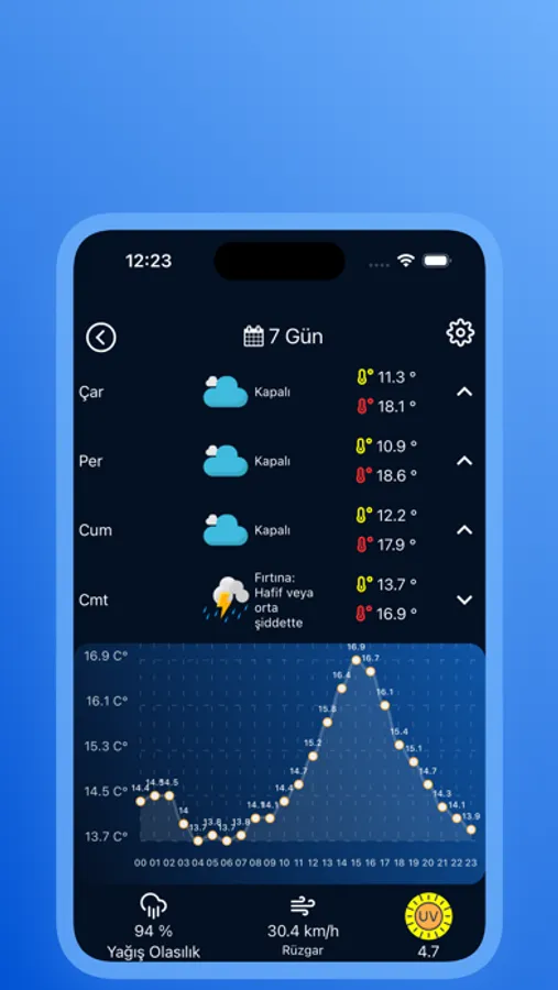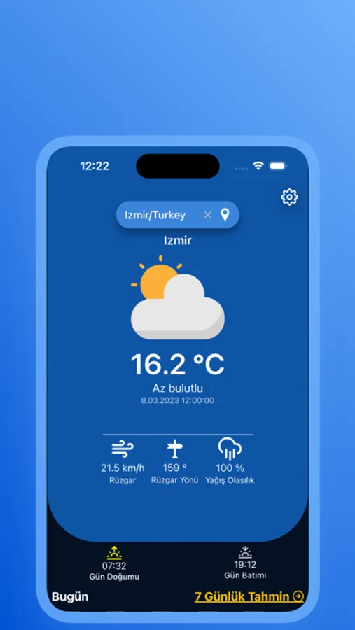 İhtiyaç duyduğunuz her an tam hava durumu raporu sizin için hazırdır. Gerçek zamanlı sıcaklık, maksimum ve minimum sıcaklık, yağış oranı, gün doğumu ve gün batımı, hava kalitesi, rüzgar hızı, UV indeksi ve 7 günlük saatlik hava tahmini de verebilir. Sadece yerel hava durumunuz için değil, tüm dünya için tahmin edebilirsiniz.