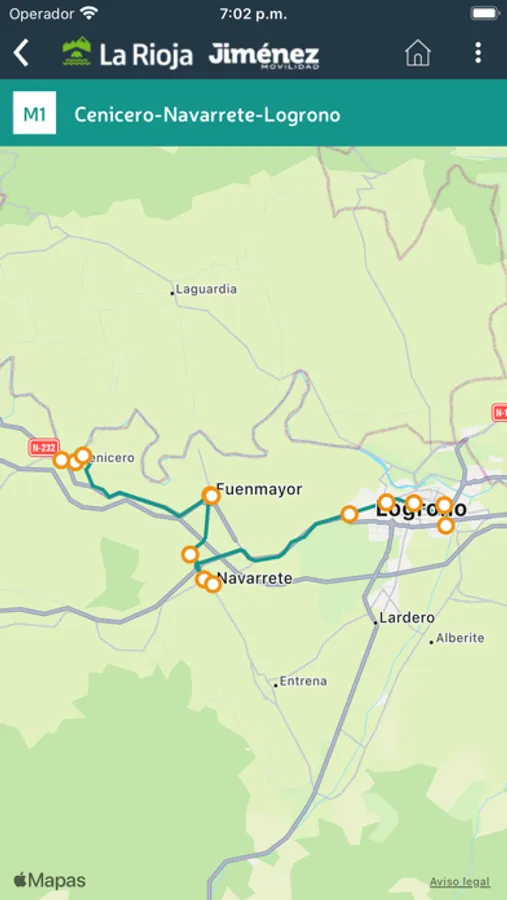 App oficial de Autobuses Jiménez para el servicio de Transporte Metropolitano de Logroño que ofrece información en tiempo real de las estimaciones de llegada de los buses a las paradas.