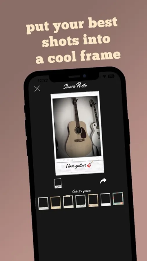 Choose your favorite photo frame after taking a shot, and add a short cool caption to it so that the memory will be unforgettable.