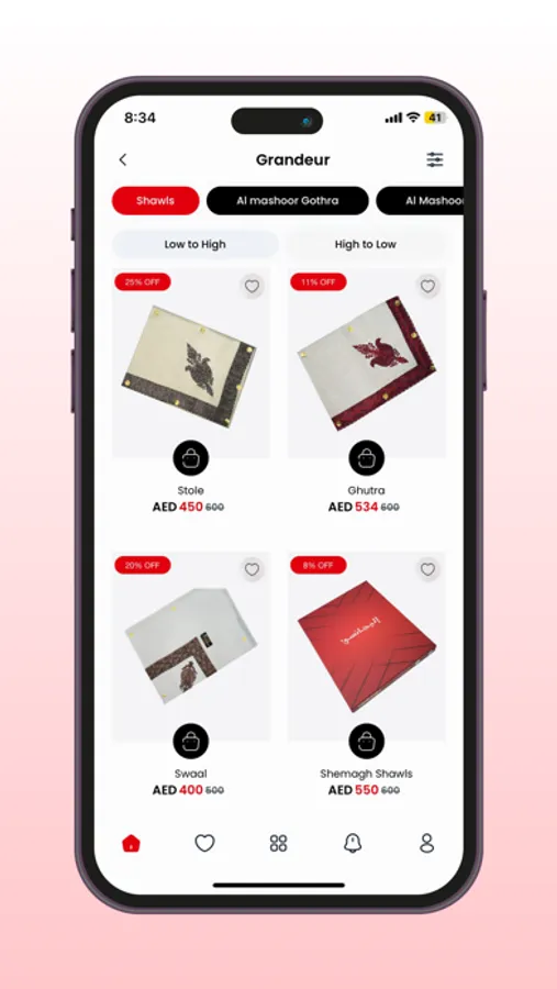 Grandeur is a fashion Mobile App where customers can buy their favorite arabic dresses online. Grandeur has different kind of categories of arabic dresses like Gothra , Hozar , Shawls , inner wears etc