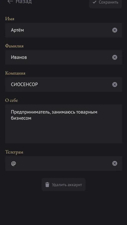 Приложение для членов закрытого сообщества инвесторов и предпринимателей "Время Первых"