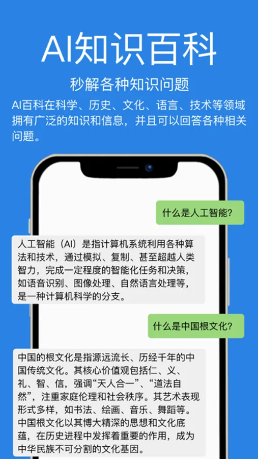 4、AI知识百科,秒解各种知识问题,AI百科在科学、历史、文化、语言、技术等领域拥有广泛的知识和信息,并且可以回答各种相关问题。