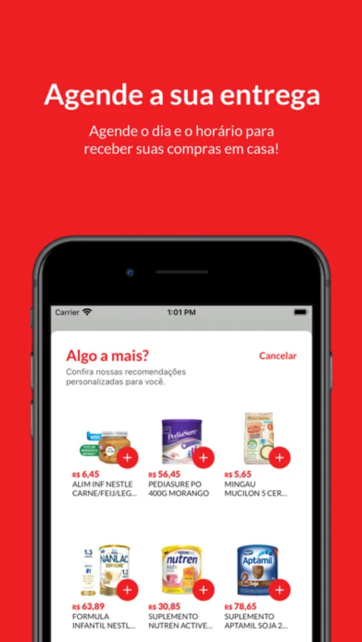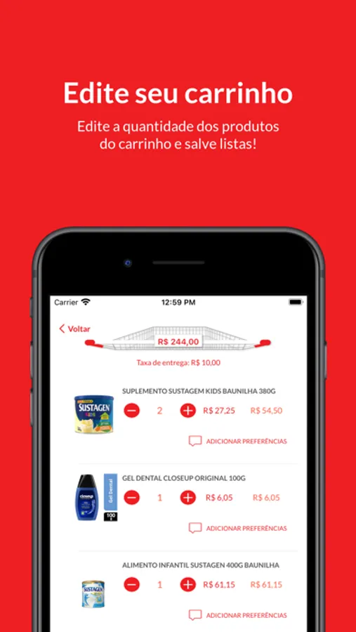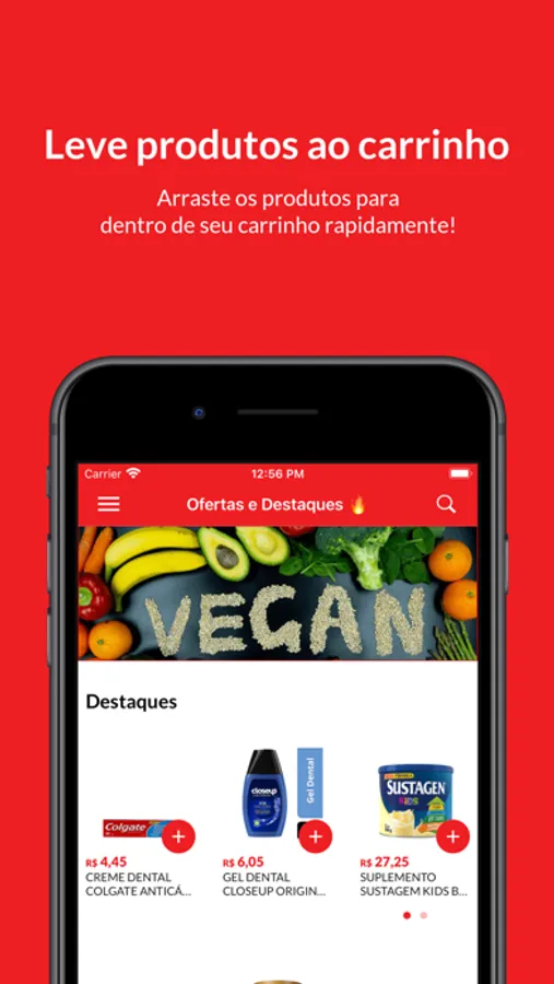 • Adicionar produtos no seu carrinho com um simples tocar e arrastar.