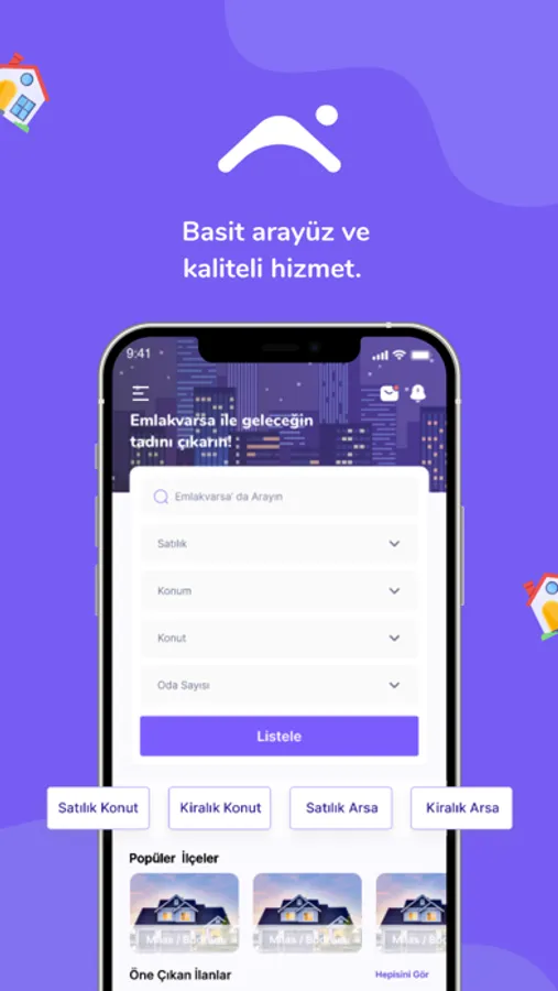 Emlakvarsa sayesinde istediğiniz bölgedeki kiralık, satlık, konut ve arsalara kolayca ulaşabilirsiniz. Akıllı filtreleme sayesinde tam istediğiniz özellikteki arama sonuçlarına kolaya ulaşın, kullanımı kolay arayüz sayesinde istediklerinize kolayca ulaşın.