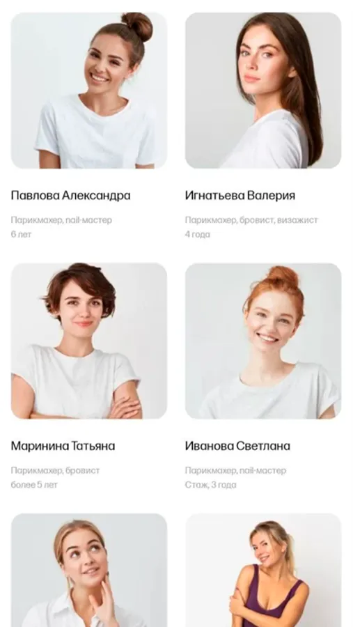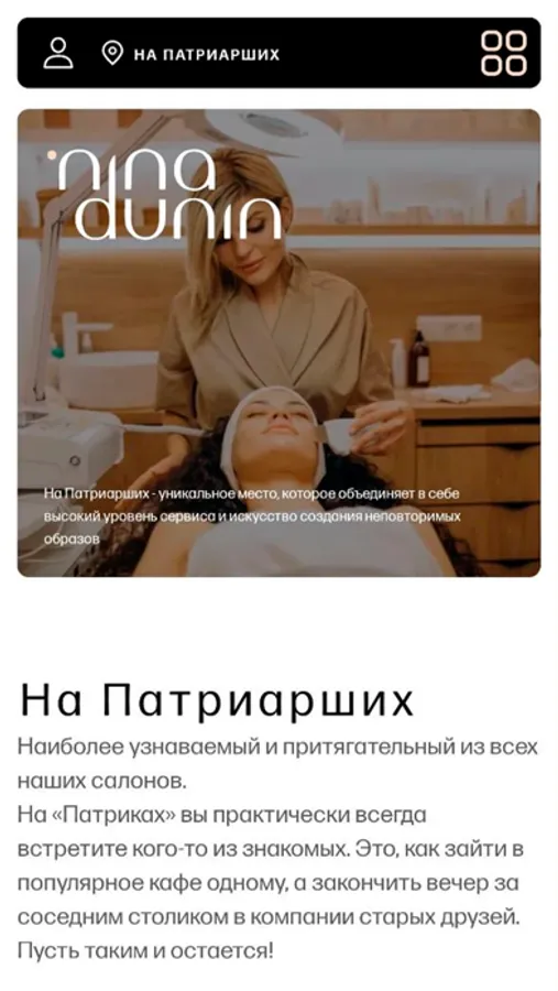 В нашем приложении имеется личный кабинет пользователя где вы можете посмотреть историю посещений, актуальные записи на посещение, изменять личные данные (имя, телефон, фото и т.д.). В личном кабинете вы можете получать push-уведомления с персональными промо-кодами и быть в курсе всех акций нашего салона. Зарегистрированные пользователи могу оставлять отзывы и оценивать работу специалистов салона. В приложении можно прочитать описание салона, какие услуги оказывает салон, у специалистов есть галерея с выполненными работами. В разделе блог можно прочитать много полезной информации, а в FAQs узнаете ответы на часто задаваемые вопросы. Для того чтобы не пропустить запись в салон за 24 часа вам придет push-уведомление.