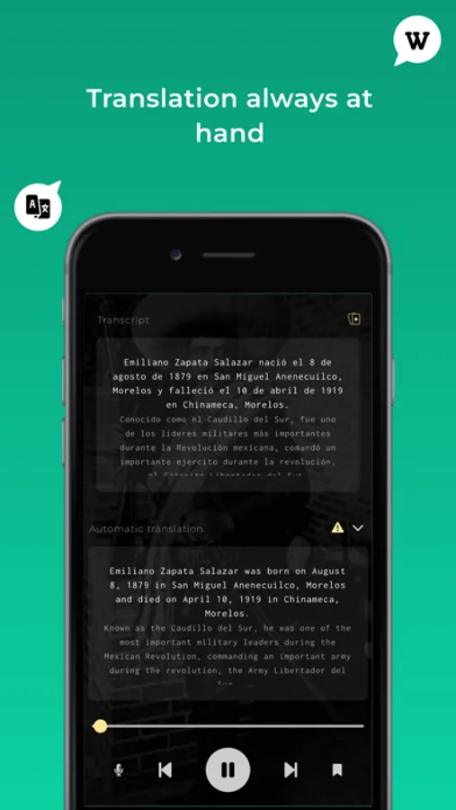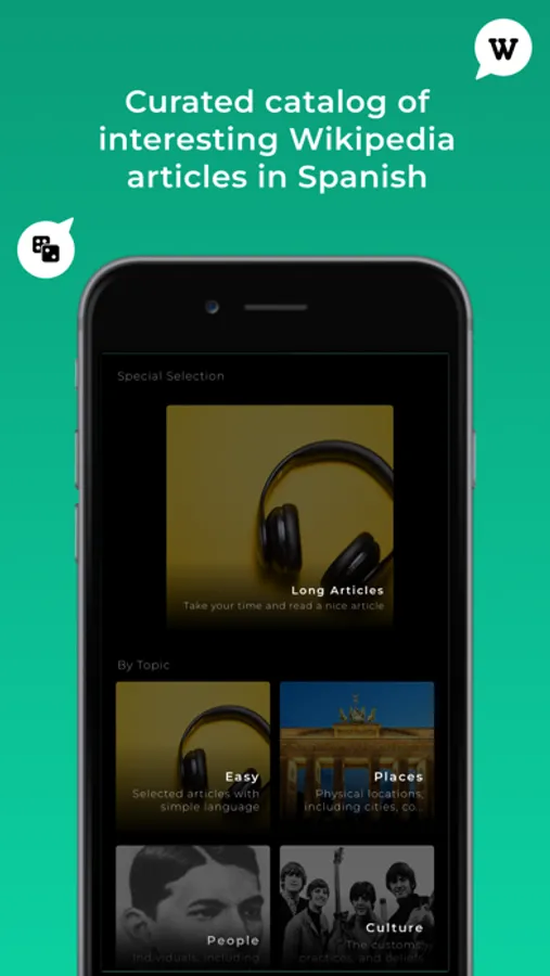 Lwingo is the best app to practice Spanish while listening to Wikipedia podcasts about your favorite topics: