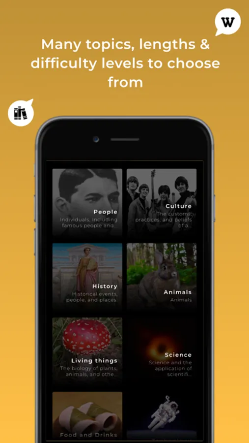 - Learn about your favorite topics while enriching your Spanish vocabulary: History, Science, Culture, Art, Geography