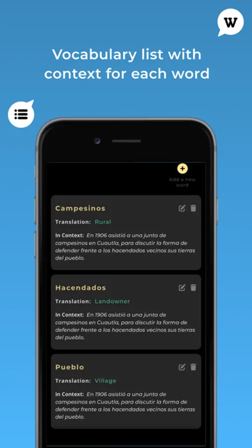 - Translation in your language is always available, to help learn new words and enrich your vocabulary