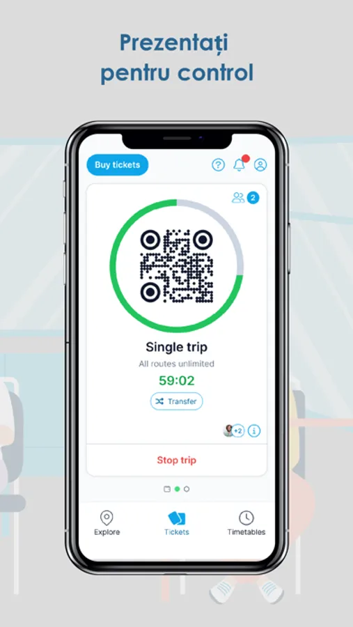 Validati la urcarea in autobuz sau tramvai prin scanarea codului QR de pe telefonul dumneavoastra si apoi va asezati pe scau. Este foarte simplu!