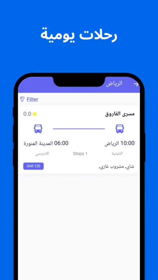 يتيح للعميل استعراض الشركات التي تقدم خدمة النقل البري للراغبين بالسفر من و إلى مدن المملكة العربية السعودية ودول الخليج , بحيث تعمل المنصة بنظام الحجوزات الالكترونية للراغبين بالسفر مع تحديد مواعيد السفر وعدد الركاب دون إختلاف عن أنظمة حجوزات الطيران , وتوفر المنصة ايضاً تطبيق مستقل لمكاتب النقل البري وحملات الحج والعمرة لتمكينهم من إضافة الرحلات وإدارتها بكل سهولة ويسر.