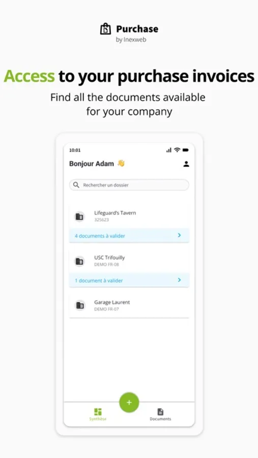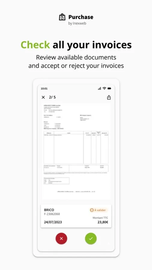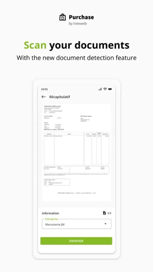 - Transmit your purchase invoices thanks to our automatic document detection function when capturing photos.
