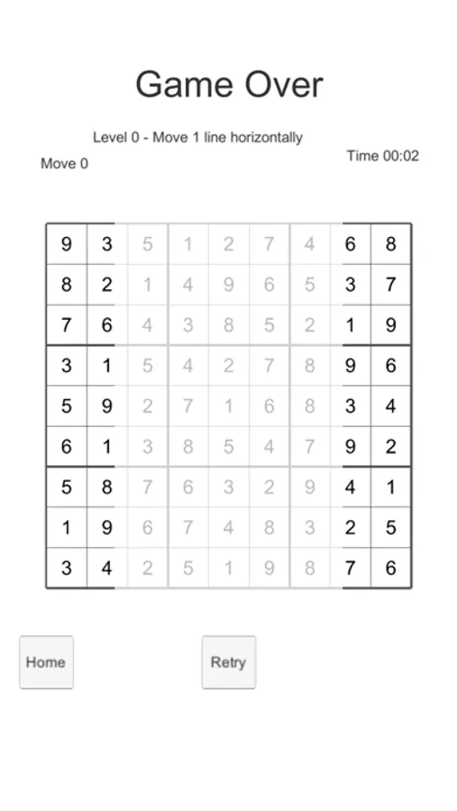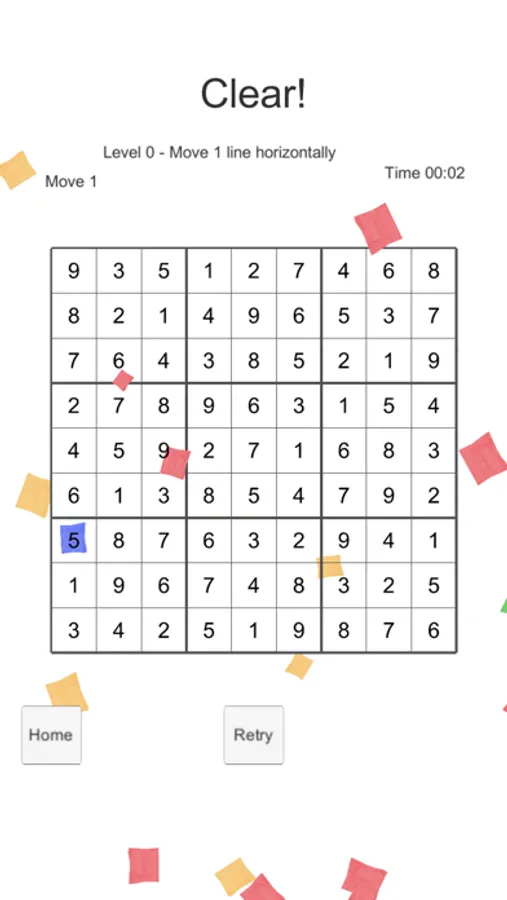 Move and slide line to complete Sudoku.