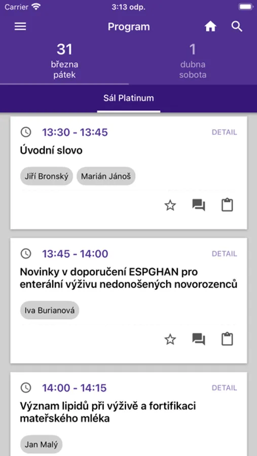 Detailní odborný program včetně abstrakt, seznam všech přednášejících, dotazy na přednášející, osobní poznámky.