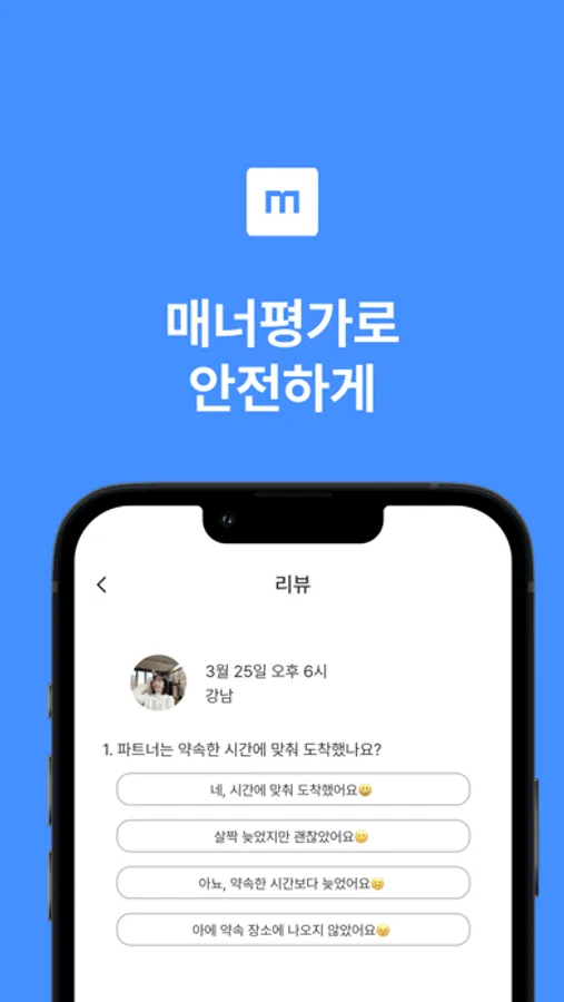 ● 매너평가를 통해 매너있는 사람들만 만날 수 있어요
