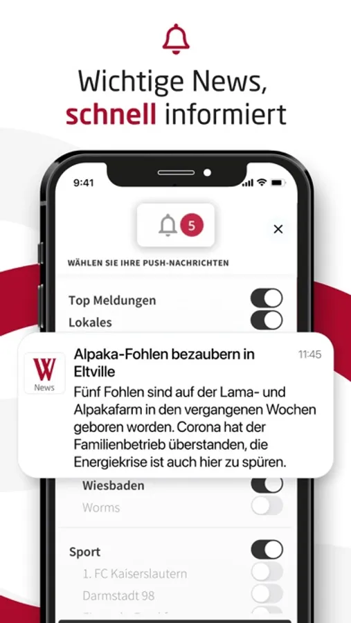 + Beim ersten Start der App wählen Sie Ihre Wunschregion aus. Die Inhalte der Nachrichten-App passen sich automatisch an.