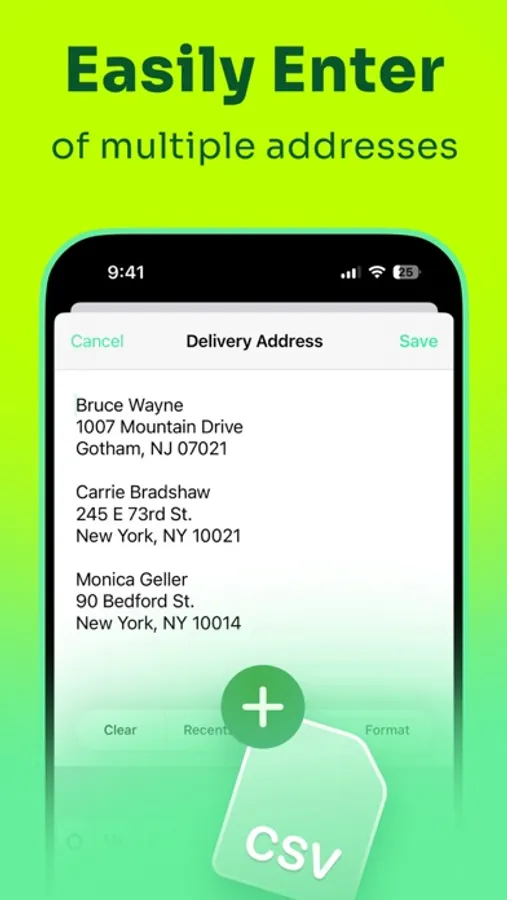 • Intelligent AI Formatting: Paste unformatted address lists or CSV files, and let the app transform them into properly formatted mailing addresses in seconds.