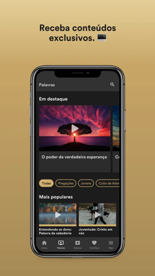 - Siga a agenda e fique por dentro de tudo que acontece na igreja, inscreva-se em eventos e tenha seus ingressos sempre com você.