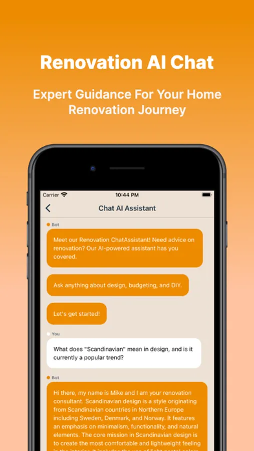 2. Chat with AI: Seek inspiration and expert advice without the added expense! Our intelligent AI chatbot is at your service, providing valuable insights and recommendations. Engage in conversations about various renovation topics, ask for tips on cost-effective materials, and discover budget-friendly trends. Get instant answers to make informed decisions and save money.